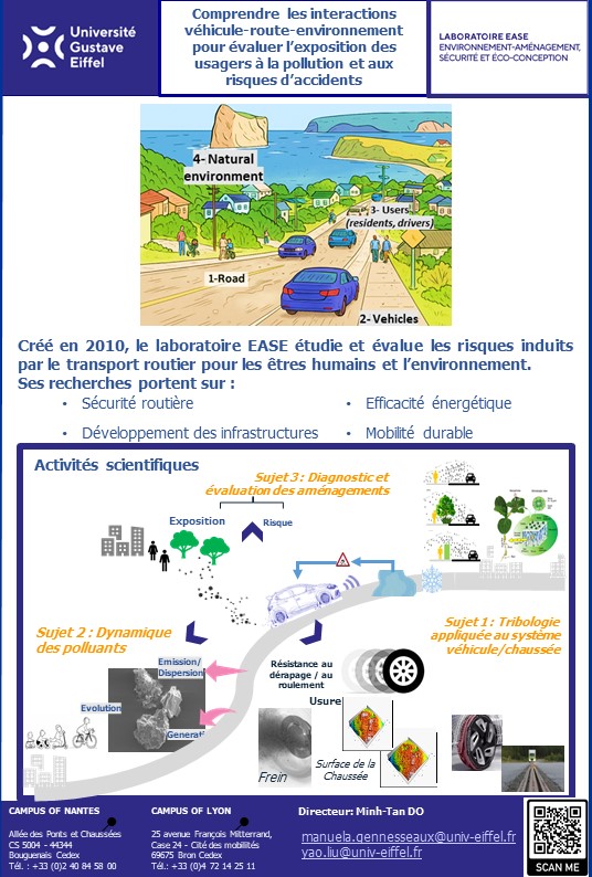 Le laboratoire EASE réalise des travaux autour de l’évaluation des impacts et des performances des infrastructures de transport. Trois sujets de recherche sont proposés :